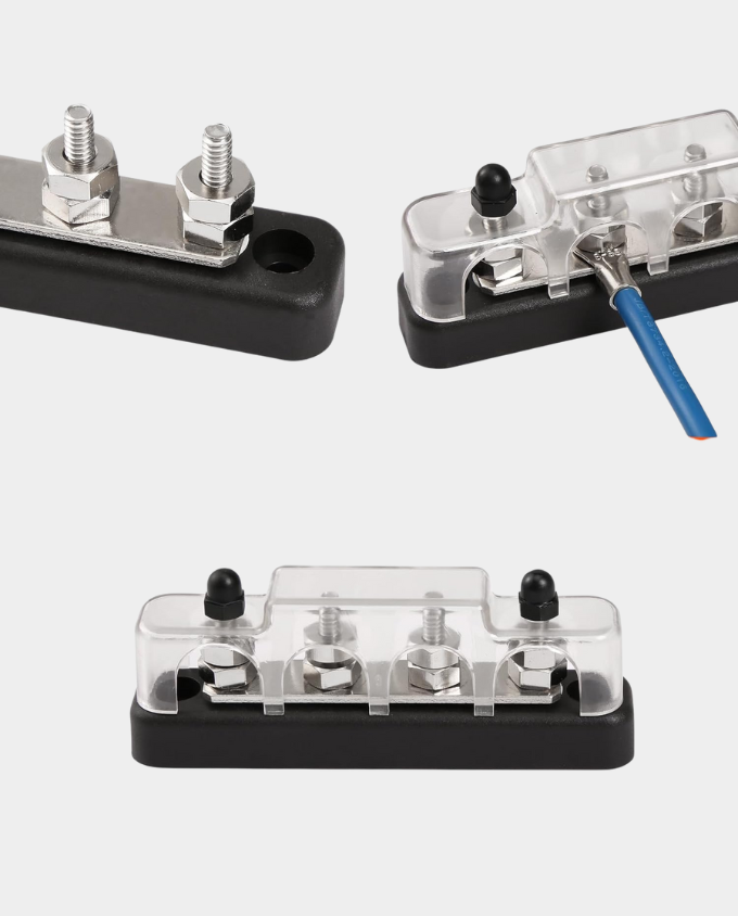 Our 4-Way Busbar is designed for neat and reliable power distribution in vehicles, boats, motorhomes and other DC systems.